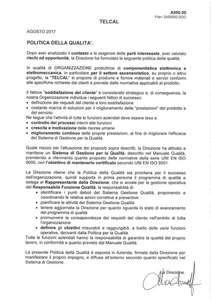 Telcal è certificata secondo le normative: